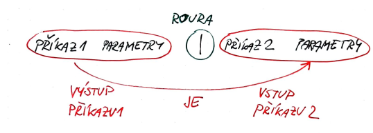 Standarní výstup prvního příkazu se stává vstupem pro druhý příkaz.