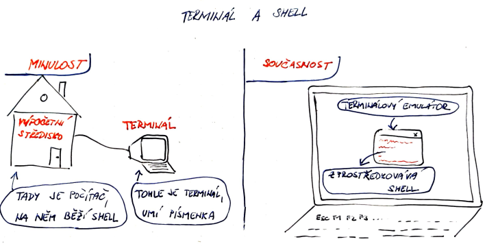 V předchozím přehledu dávám dohromady výhody terminálu a shellu. Jak je oddělit? Terminál je jen to okno, ve kterém můžou být písmenka.