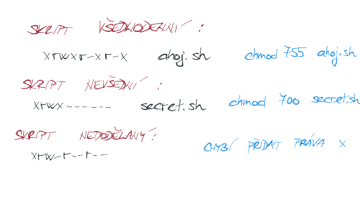 Takto spuštěný spustitelný soubor si v hlavičce přečte, čím má být interpretován, pokud tuto informaci nenajde, pak se podívá do /etc/passwd a použije zde definovaný interpret pro daného uživatele. Pro vás na perunovi je to /bin/bash. Kromě práv ke spouštění je potřeba, aby soubor měl i práva ke čtení, jinak jej interpret nepřečte.