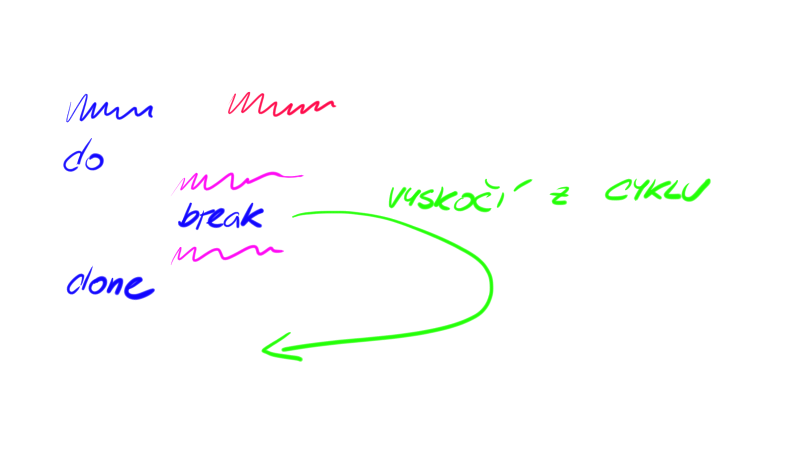 Příkaz break způsobí, že vyskočíte z cyklu.